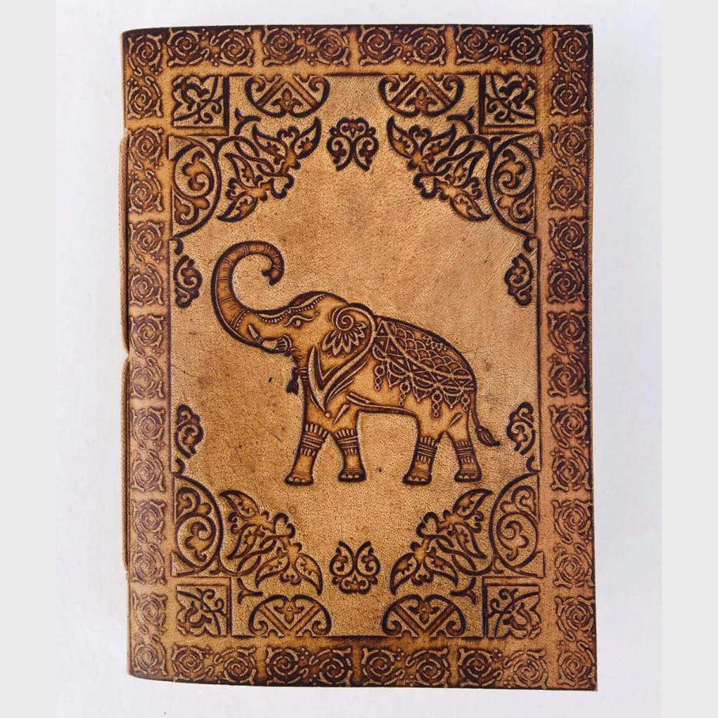The elephant, beautifully carved in the center, brings a sense of strength and elegance to the design. The detailed patterns around the edges highlight the artisan’s skill and make this journal visually unique.